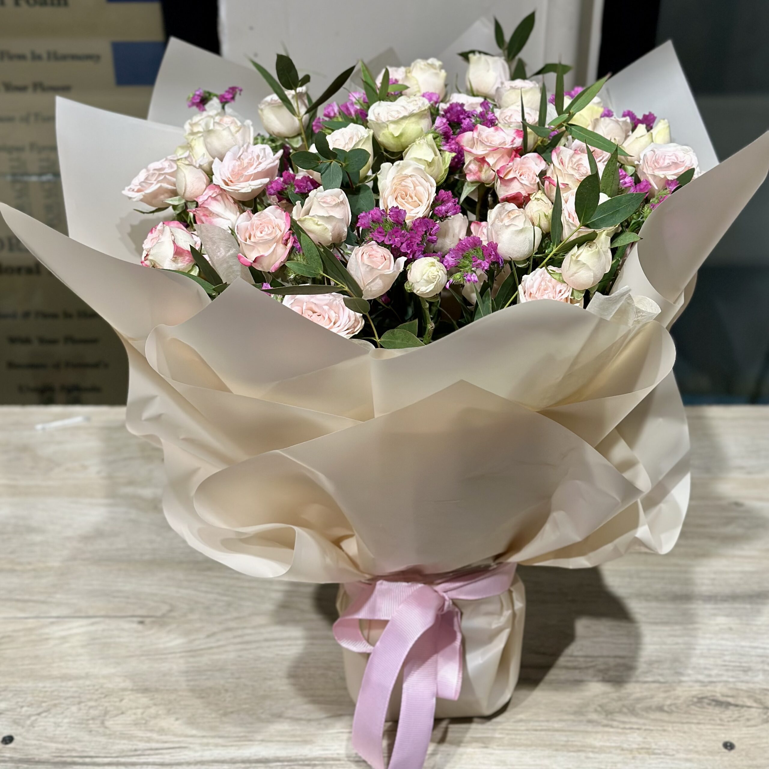 بوكيه جوري وردي وابيض 90.0 ر.س
